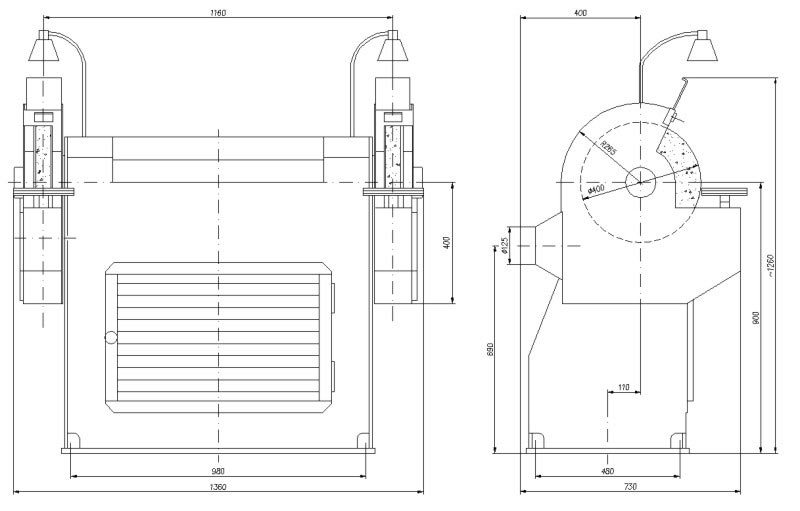 Dwie ściernice, umieszczone na końcach wałków, napędzane są od jednego silnika ( z dwiema końcówkami wału) umieszczonego wewnątrz korpusu szlifierki poprzez oddzielne przekładnie pasowe. Ściernice osłonięte są osłonami zaopatrzonymi w wymienne i nastawne podpórki do oparcia trzymanych w rękach odlewów.
